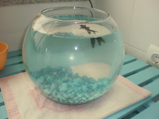 Apresento-vos a Doris, a única sobrevivente dos 4 peixes. Alguém me explica o que é aquela espécie de fio que está agarrado a ela???? (Clicar na imagem para ver melhor). De há uns dias para cá todos os dias tem esta coisa!